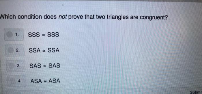 Solved Which Condition Does Not Prove That Two Triangles Are Chegg Com